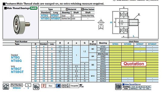 Bearing with threaded stud NTSBG13-5