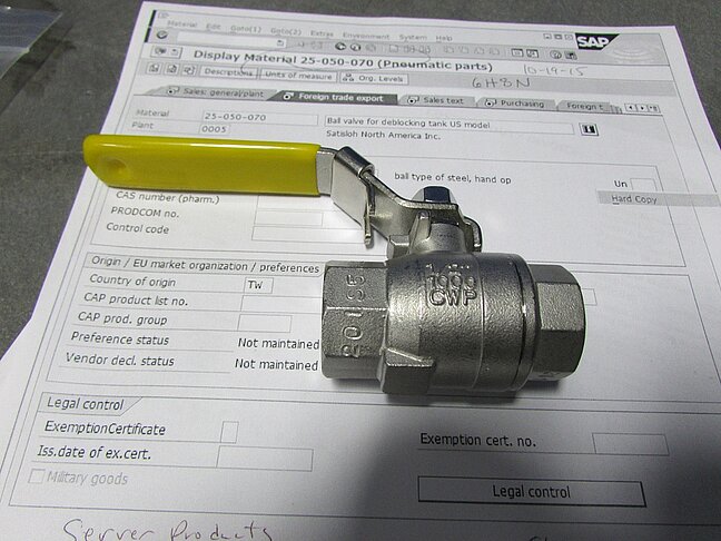 Ball valve for deblocking tank US model